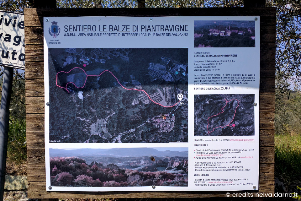 Da questo punto panoramico inizia un piccolo sentiero di trekking chiamato appunto, il Sentiero delle Balze di Piantravigne.